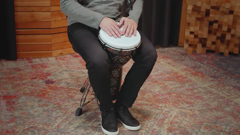 The 10” MEINL Alpine Djembe features an incredibly lightweight yet durable construction that is perfect for travel. Outfitted with a durable synthetic head, the unique body style delivers a wide range of deep bass tones and crisp highs that responds to your touch at all dynamic levels. A sturdy, easy-to-use mechanical tuning system ensures consistent sound regardless of changes in weather, making this drum a great companion for outdoor playing. The striking and eco-friendly finish options complete the djembe’s refined appearance.