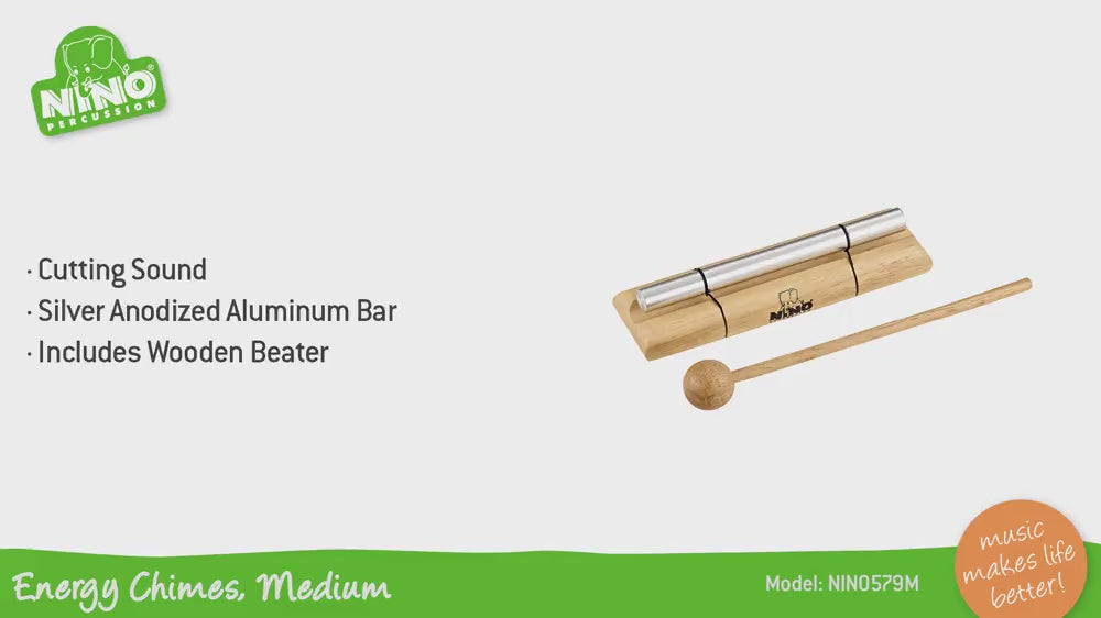 These NINO® instruments have a very cutting “ping” sound. The free floating bars create a very long sustain. NINO® offers three different pitched Energy Chimes, as well as a model with three bars.